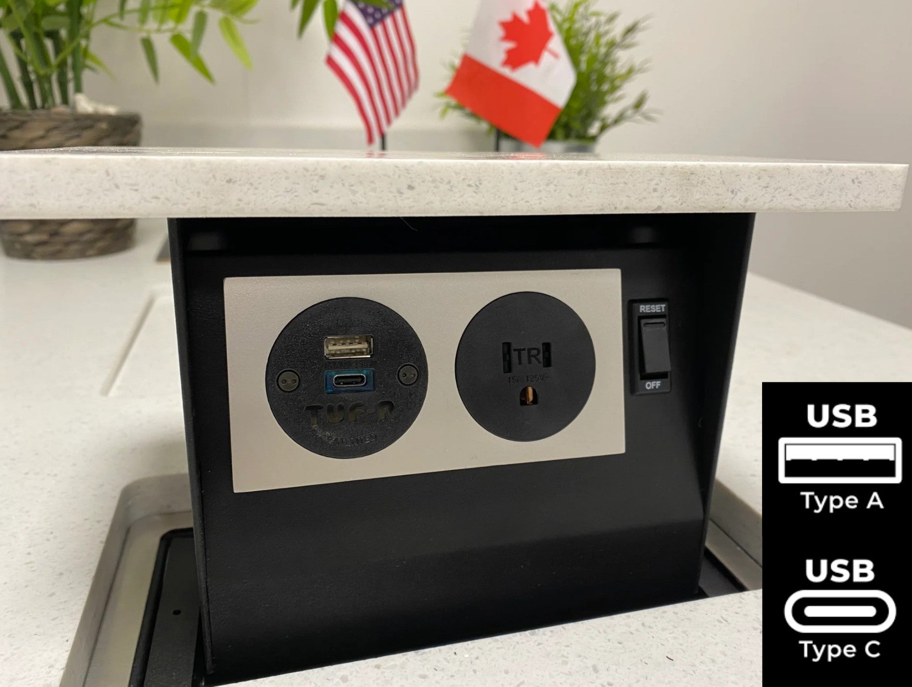 Hidden Pop up for kitchen countertop 15a USB closed