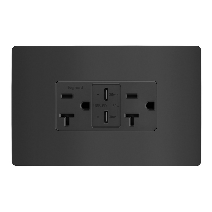 - 2x 20A tamper-resistant outlets (powers heavy appliances) + 2x USB-C 30W (charges phones/tablets)